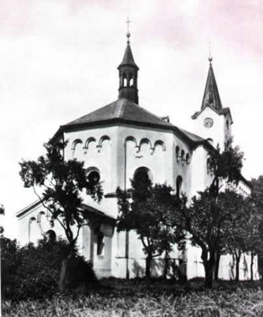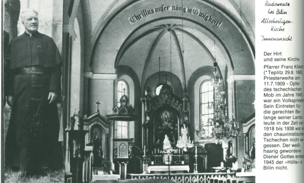 Fara v Radovesicích zanikla v 17. století, roku 1853 byla však znova obnovena, v letech 1866 - 67 byl nejprve vedle starého a později zbořeného kostela postaven kostel nový. Pseudorománský kostel Všech Svatých stával na stráni nad obcí a kolem něj byl ovocný sad. V interiéru se zachovalo jednoduché pseudorománské zařízení, hlavní oltář byl signován 1877 jako dílo J. Šebora a A. a Fr. Bergmannových z Bíliny. Škola se založila v roce 1875.